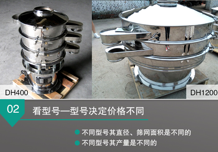 新鄉大漢全不銹篩振動篩生產的直線振動篩型號從DH600到DH2000,不同型號的全不銹鋼振動篩,其直徑、篩網面積是不同的,所以這就決定了不同型號的全不銹鋼振動篩產量是不同的,這也必然會造成全不銹鋼振動篩價格上存在明顯的差異。 看設計—設計決定價格不同